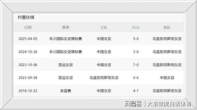 根据两队最近5次交手的数据显示,中国女足以5胜0负的绝对优势占优,最低比分也是3-0,还出现过7-0、6-0、5-0的悬殊比分。